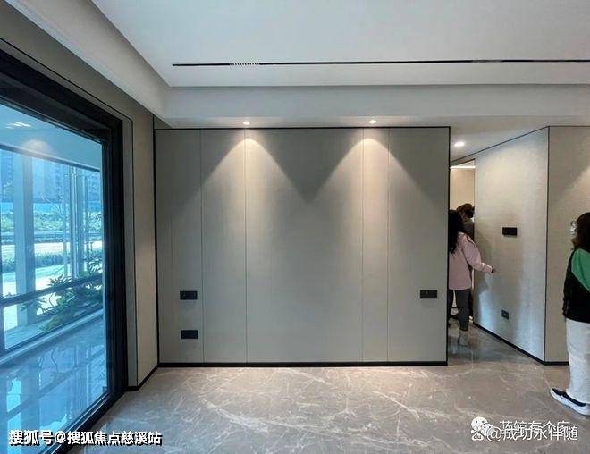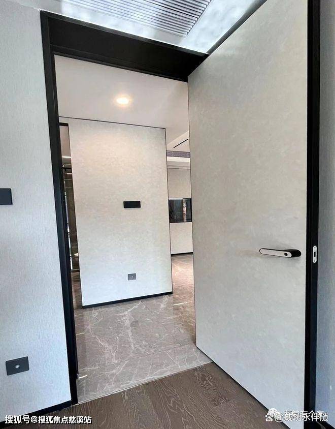 此外,房间门也是重头戏,市场价6000元一扇,比很多入户门的成本还要高。这里用的是窄边隐形生态门,双面隐形,通顶设计,美观大气。