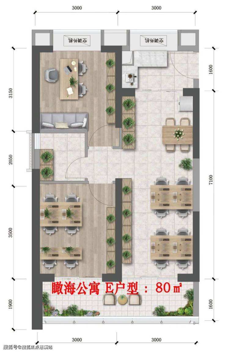 总楼栋规划:2 栋平层海景公寓、2 栋 LOFT、1 栋总部写字楼、1 座 7.8 万方购物中心