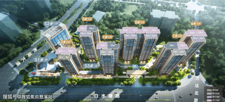户型:提供95-135平方米的高拓户型,包括2+1、3+2、3+3等多种灵活空间设计,得房率最高可达117%。