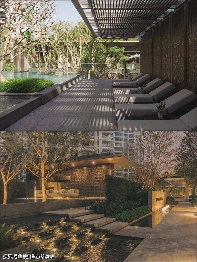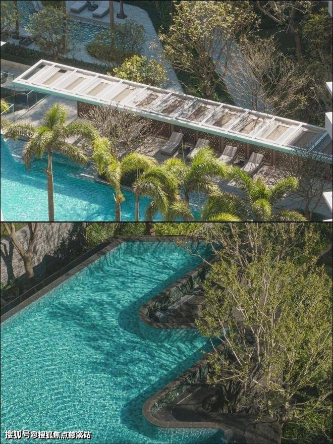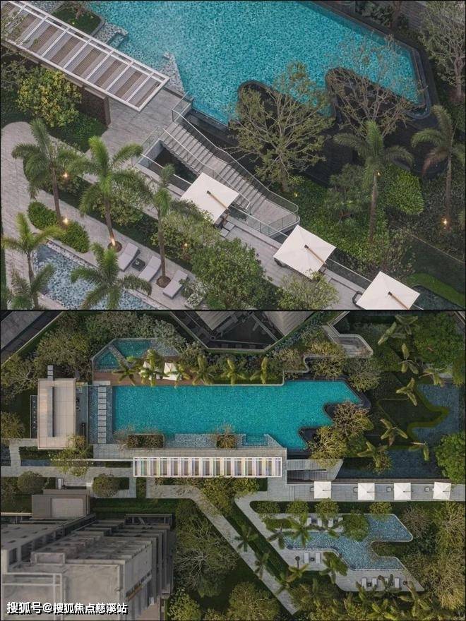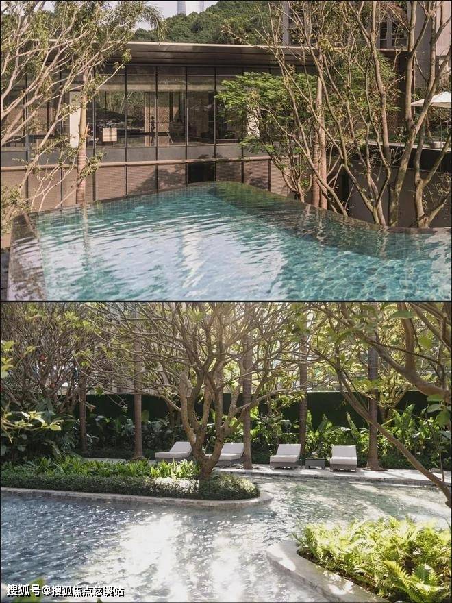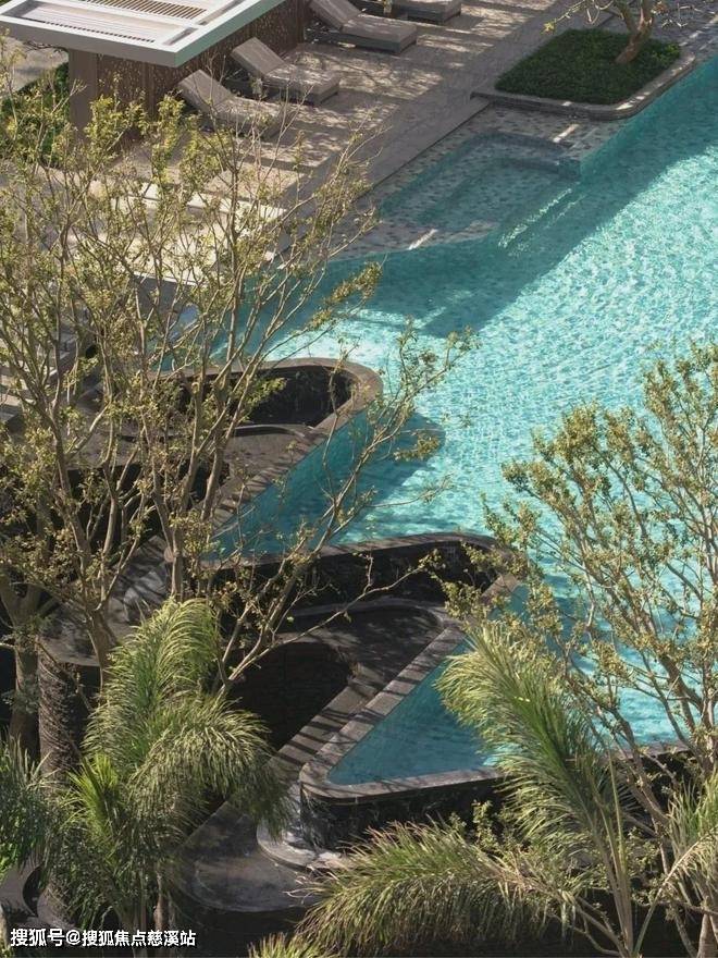 这里仿佛依山而建,坐拥湾区豪华的山景和碧蓝的池水。在热带阳光的照射下,池水闪耀着点点的光芒。通过丰富的植物层次,营造出洗涤心灵的自然感和私密感。