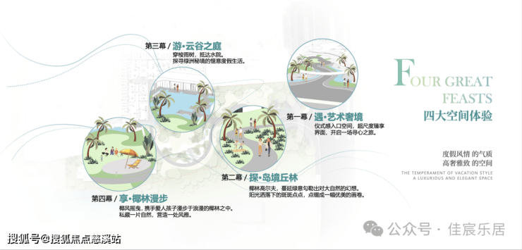 近44亩海心公园萦绕社区,汲取热带、海洋、岛屿三大在地文化基因,营造四幕、九境景观礼序,私享公园里的热带岛屿度假风情。