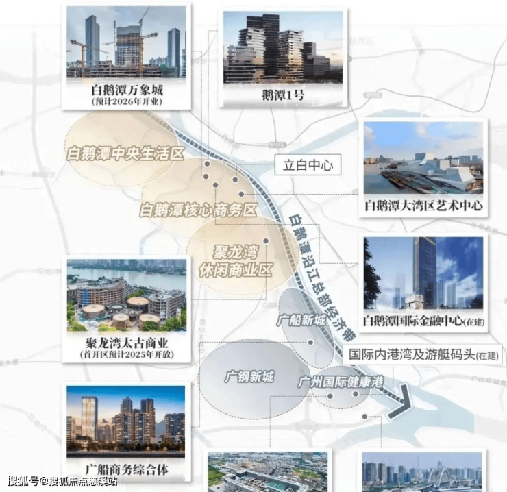 作为西翼CBD,则以重奢为支点、以沿江带为依托,开辟了一条带状连片、向外辐射的发展路径。白鹅潭不但产业猛进,各个维度的兑现相当“勤奋”。从搞商业、促旧改到建枢纽与修路桥,整个板块总让人常看常新。