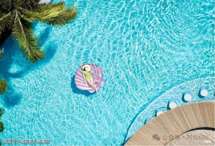 【约560 ㎡海岛泳池会所 以浪为界的奢居日常】超长约30米泳道,搭配池底涌泉,层层涟漪,营造海浪波光粼粼的度假奢感。