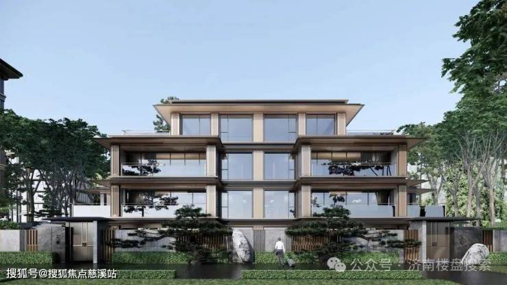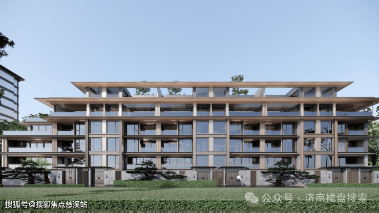 【外立面】:洋房和小高层为首层为爱马仕灰石材,标准层为金属铝板搭配水包砂真石漆;别墅产品首层为爱马仕灰石材,其它层为铝板,披檐顶部为蓝灰色铝板面