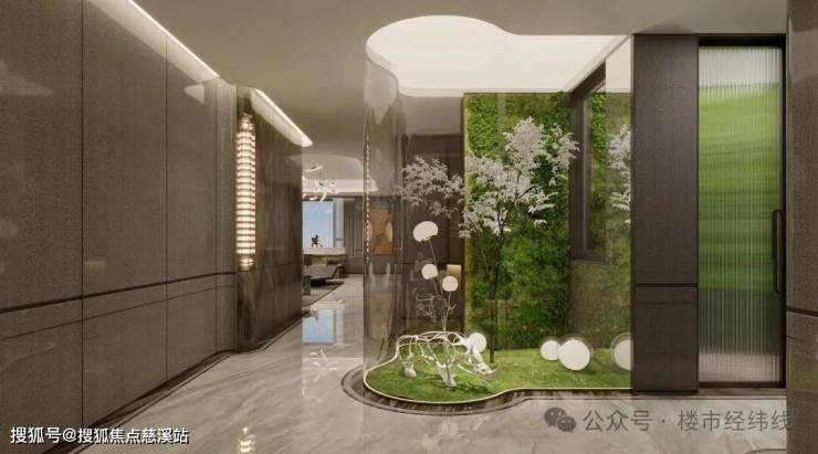 精心设计入户特色景观花庭,将花园景观搬到室内,让繁华都市生活变得柔软有温度。