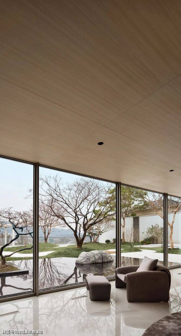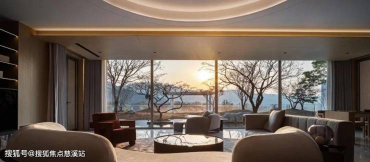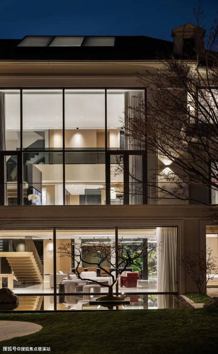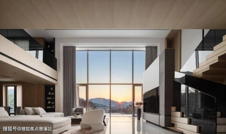 原建筑本为法式形制的建筑构成,其窗户也是法式建筑的小窗,客厅空间,把原建筑的六扇窗打通合并为一处落地大窗,增大了光通量,让半山的景色瞬间闯入到6米挑高的大客厅。