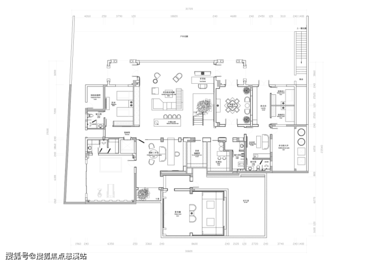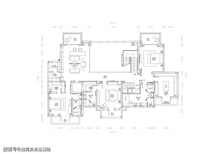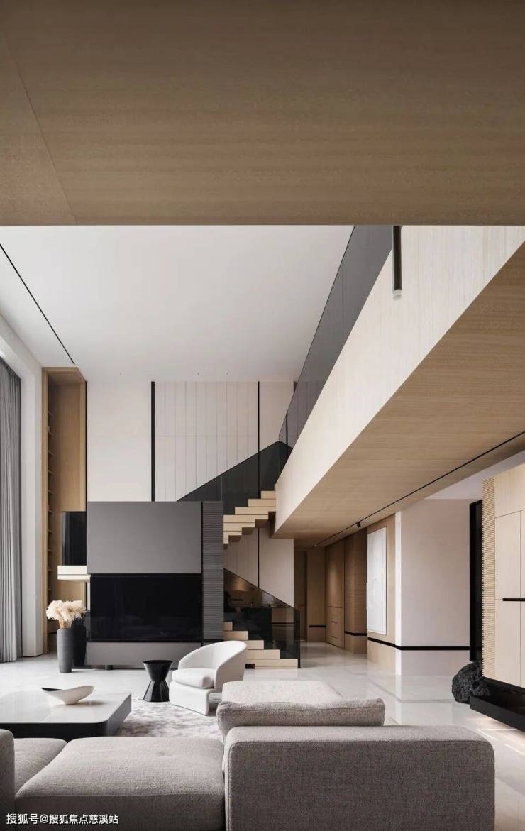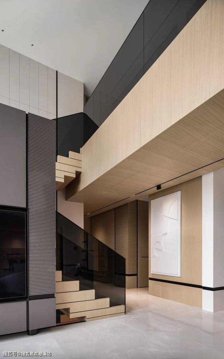 空间布局上,在标准层一层空间打通了客餐厨空间,开放了所有无谓的隔阂,把原户型本为楼梯间形式的空间废除,将楼梯重新融入到客厅空间中。突出了楼梯上下动线上人的活动与客餐厅空间的互动和视线的交流。
