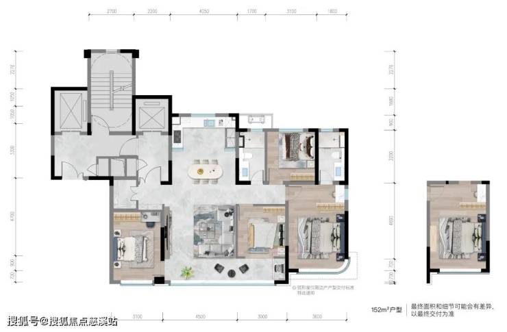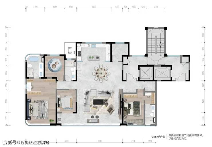 项目主力户型有5种:建面约200/225/240/265㎡、400㎡,为四代宅产品,赠送多,得房率高,有大露台,层高3.3-3.5米。