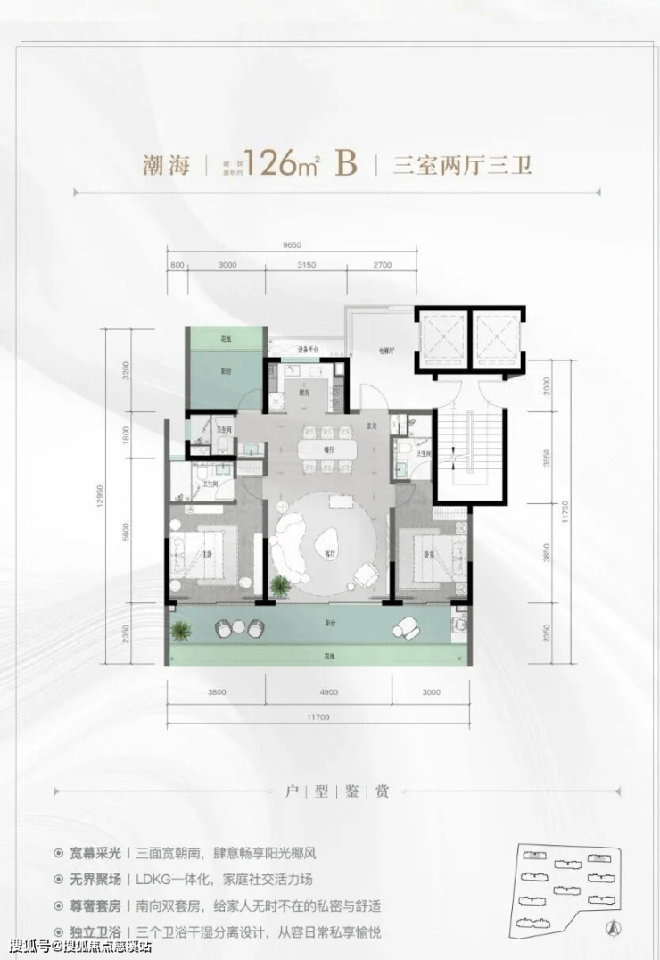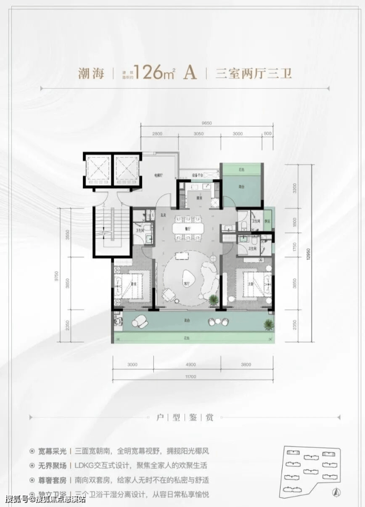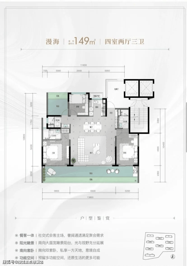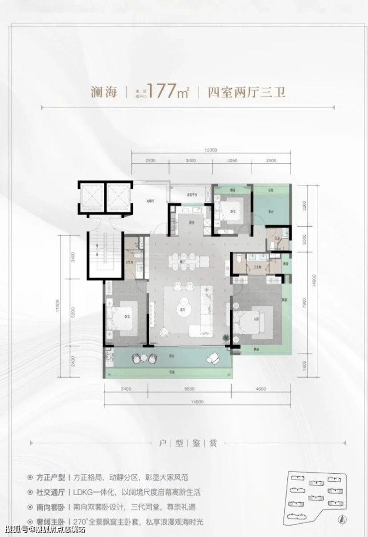 规划建筑面积约126-213㎡观海奢装大平层,约3.1米阔绰层高,部分户型创新设计270°全景飘窗主卧套、四开间朝南等,全成品高标奢装,营造全新舒居体验。