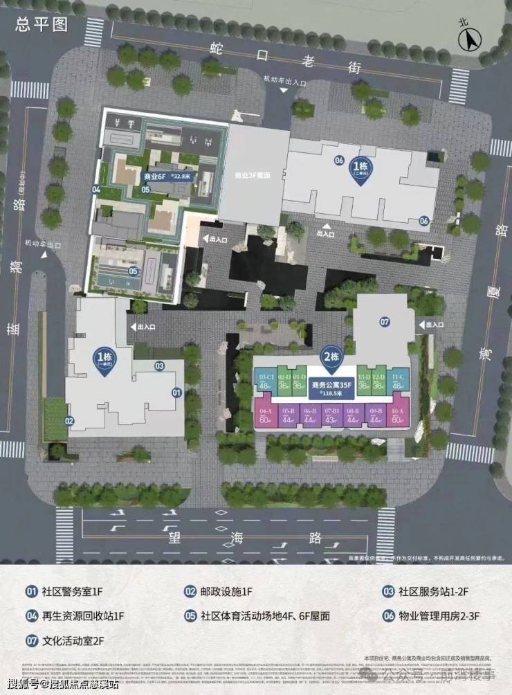 招商望海玥由招商蛇口打造,总占地9072㎡,计容总面积6.57万㎡,一共4栋楼,其中1栋1-2单元44F住宅,2栋35F商务公寓,可售住宅35套,公寓389套。
