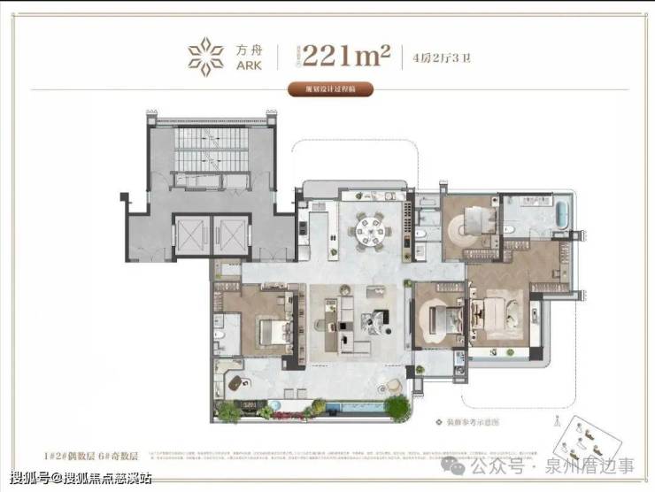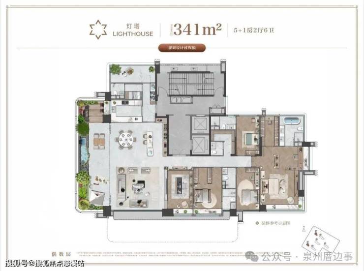 项目规划6栋高层共224户,其中341㎡一层一户仅42席,户户皆带私人专属空中花园,打造纯粹建面约218-341㎡第四代住宅大平层。
