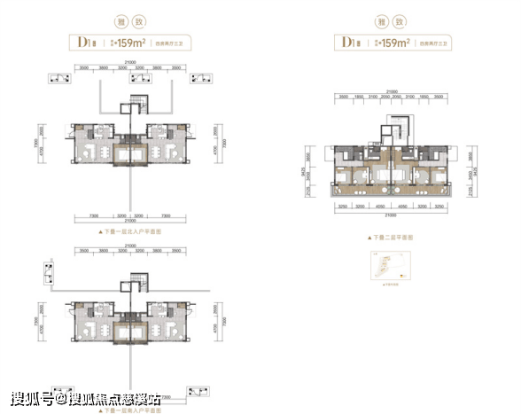 天地叠院D1户型:建筑面积约159㎡,四房两厅三卫。大面宽方正横厅,连接露台庭院,视野开阔;270°环幕视野,最大约87㎡空中会客厅;多层多套房设计,动静分区,互不打扰。带超大花园庭院,幸福指数超高。
