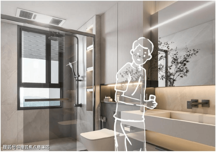 【奢配双卫】公卫干湿分离。精心考虑业主需求,日常更实用,每个清晨从容有度,告别洗漱排队的局促。