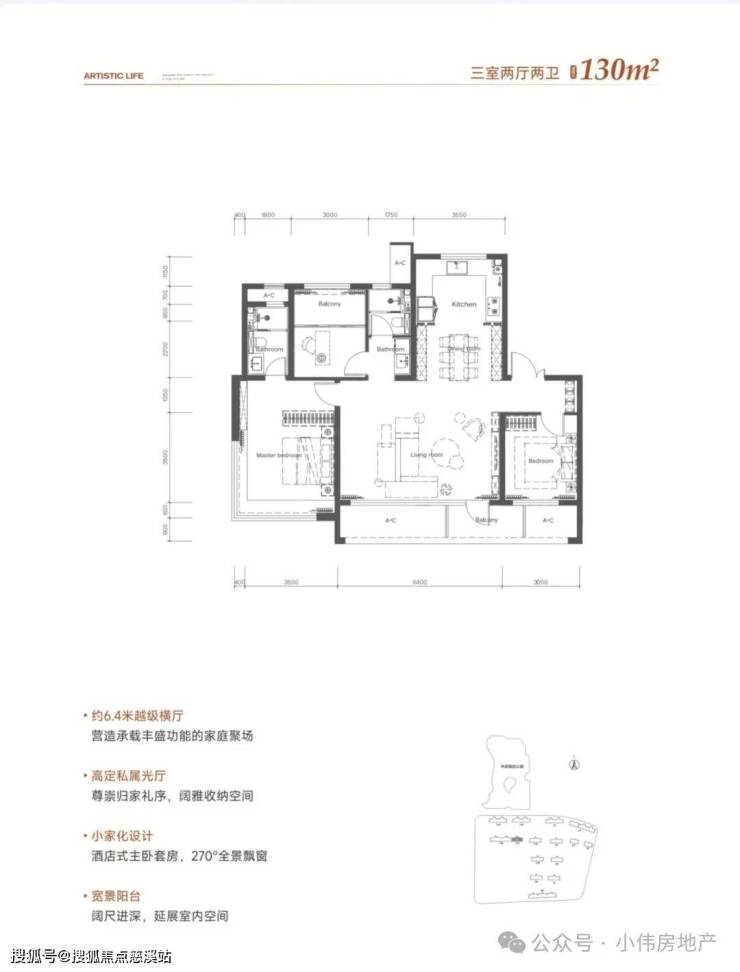 🔥C户型|130㎡三室两厅两卫: