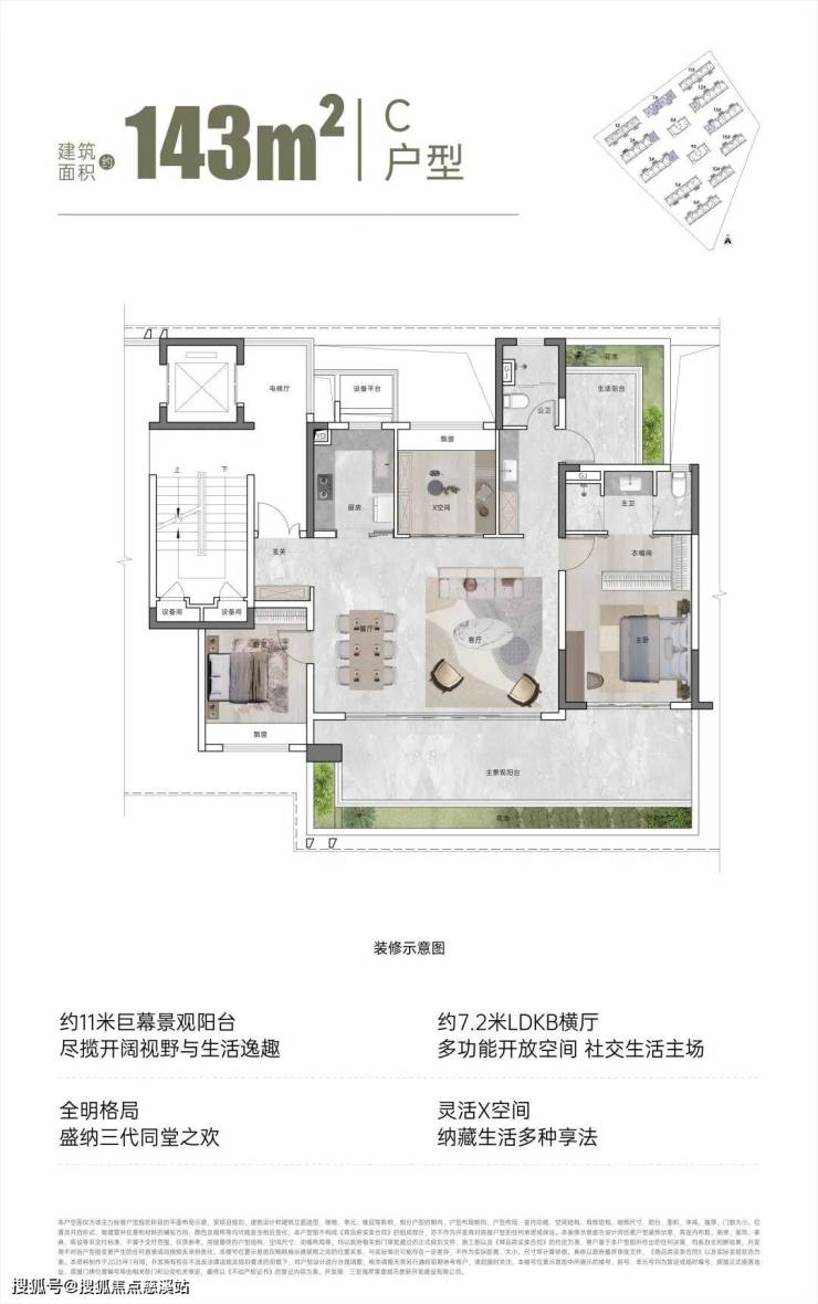【面积区间】建筑面积约110㎡、131㎡、143㎡、195㎡