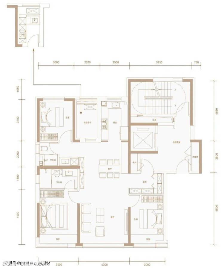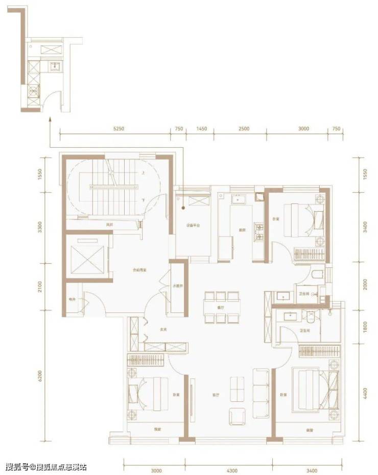 建面约125㎡,3室2厅2卫1厨