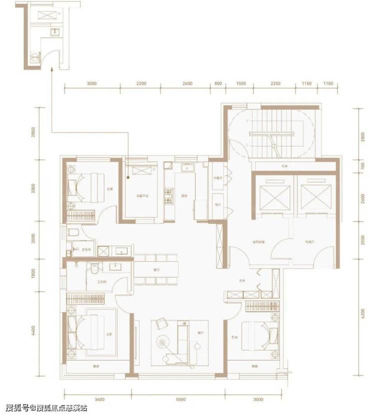 建面约138㎡,3室2厅2卫1厨
