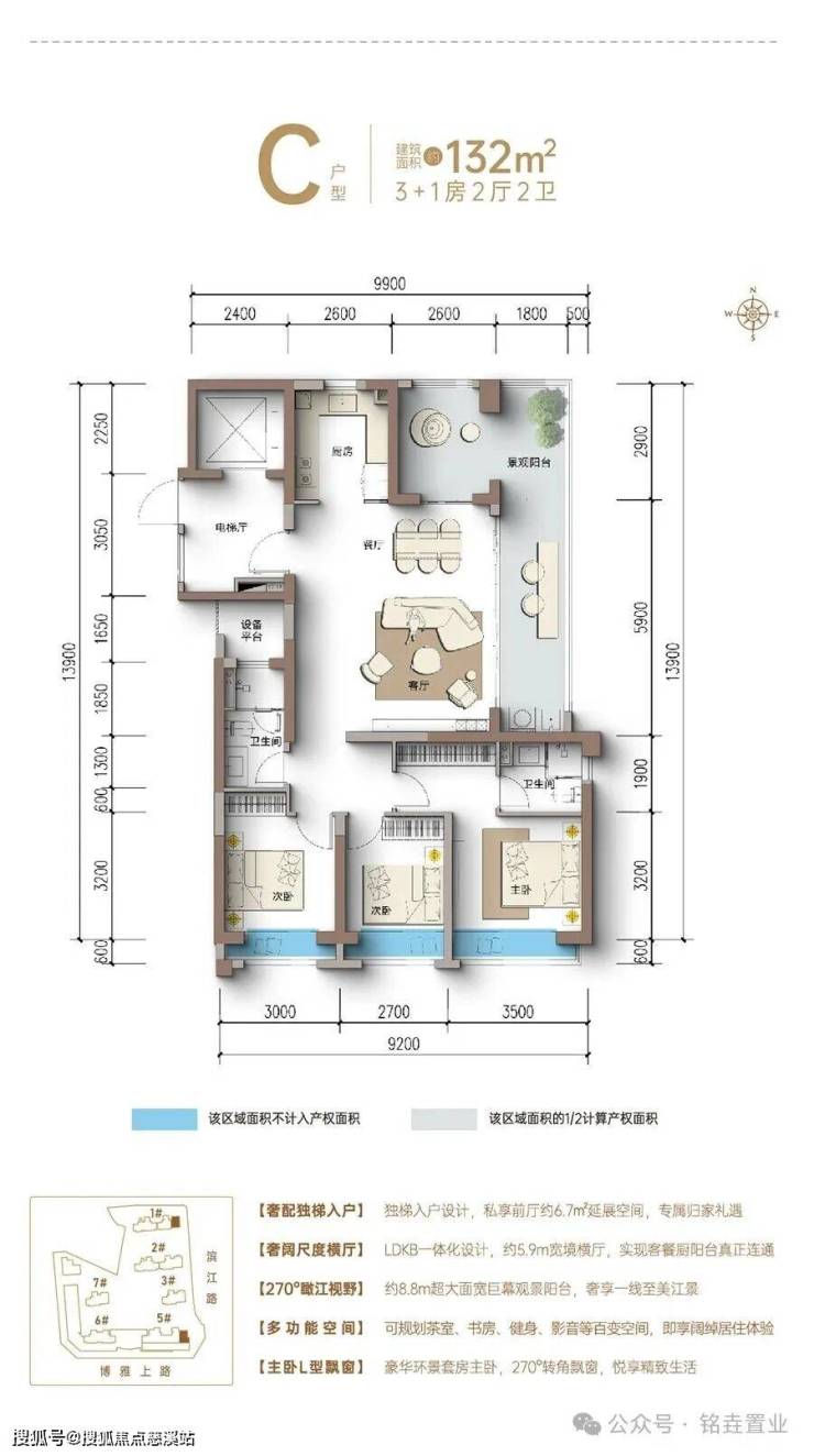 面积区间:约108-142㎡一线江景高定奢居