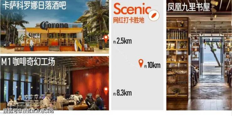 N多网红打卡点 —卡萨科罗娜日落酒吧(约2.5km)、M1咖啡奇幻工场(约8.3km)、冲浪俱乐部、书屋等网红娱乐丰盈海上趣味生活。