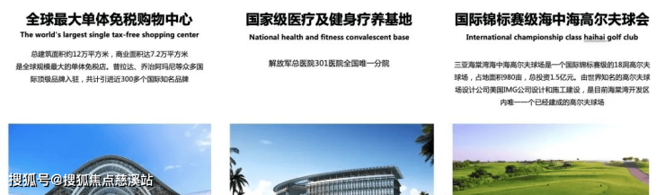 中国人民解放军总医院(301医院)、中国人民大学附属中学(人大附中)、海南国际免税城、 HELLO KITTY 主题乐园、海昌梦幻不夜城、乐高主题公园、亚特兰蒂斯水世界、海棠68(Arena)商业街、水稻国家公园、海中海高尔夫、36洞神泉国际高尔夫、IMAX影城、银行、超市、生活商圈配套。