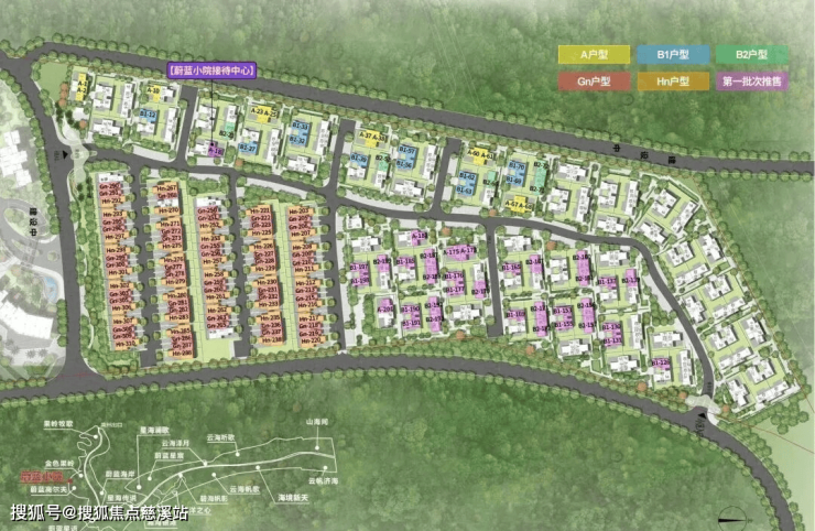 1、项目总规图(红色圈住为“蔚蓝小院”):