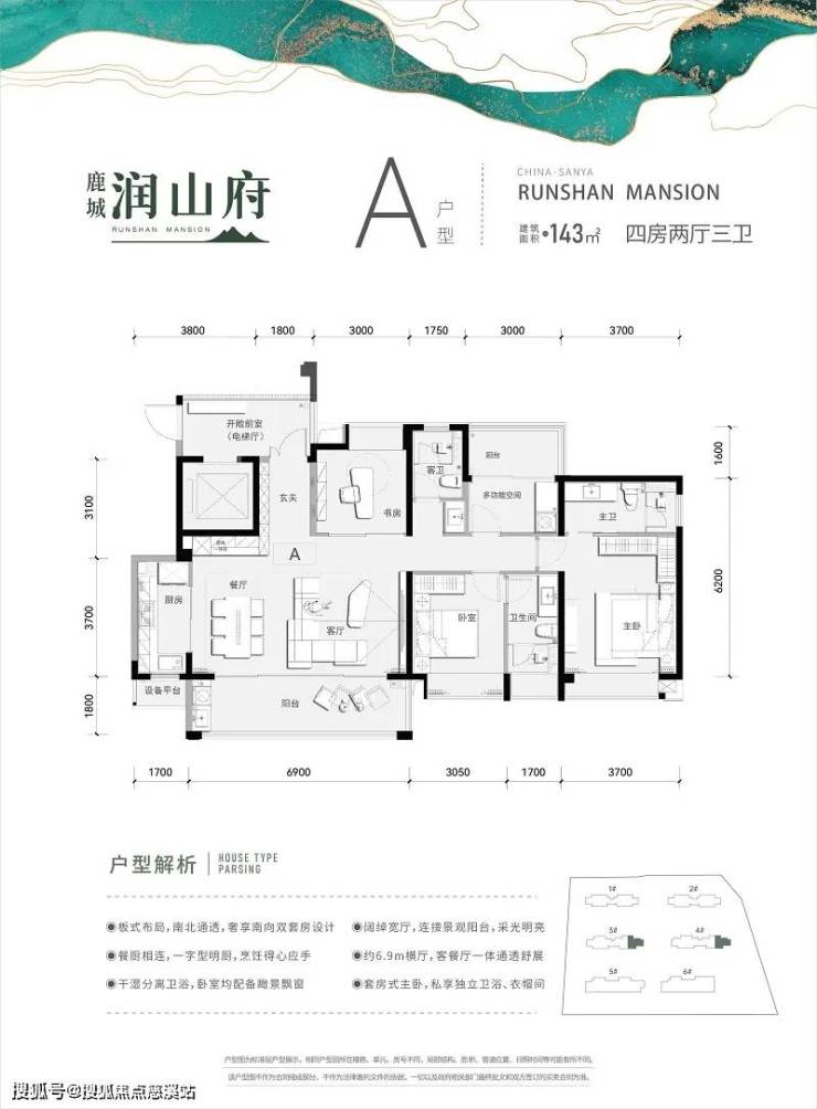 鹿城·润山府提供了多种户型选择,包括A户型143㎡四房两厅三卫、B户型129㎡四房两厅两卫、C户型105㎡三房两厅两卫以及D户型119㎡三房两厅两卫。这些户型均采用了宽境横厅设计,6.3-6.9米面宽超大横厅,客餐厅互为一体,整个公共区一览无余。这样的设计不仅提升了居住的舒适度,还增强了生活的仪式感与体验感。