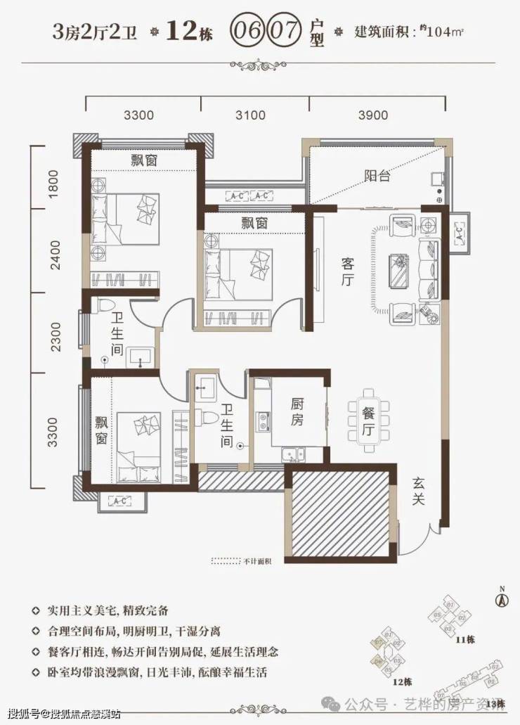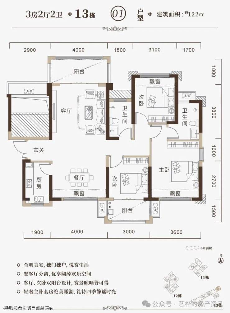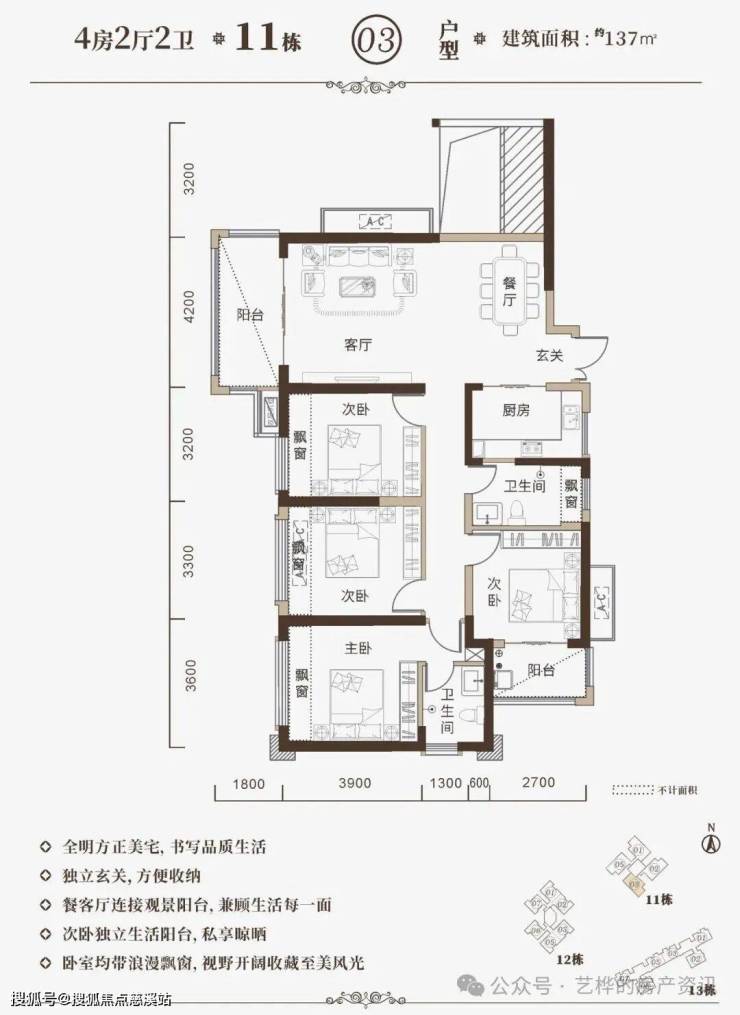梯户比:11栋2梯4户,12栋2梯6户,13栋2梯3户