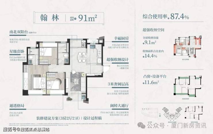 91㎡户型:岛外双阳台孤品,自带王炸稀缺光环