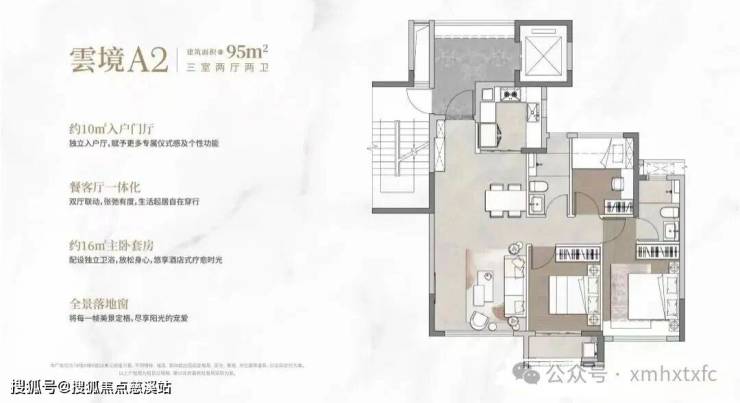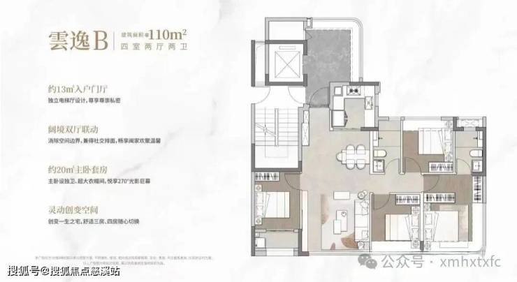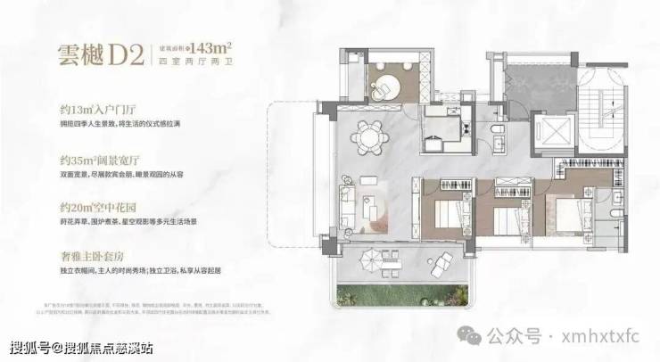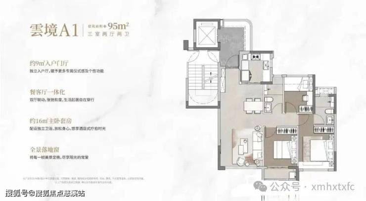 楼盘由7栋15—17层的洋房小高层组成,合计340套,最小面积95平,没有特别小,最大是143平四代住宅,定位是品质刚改/改善型社区,也是同安目前第一个四代住宅!