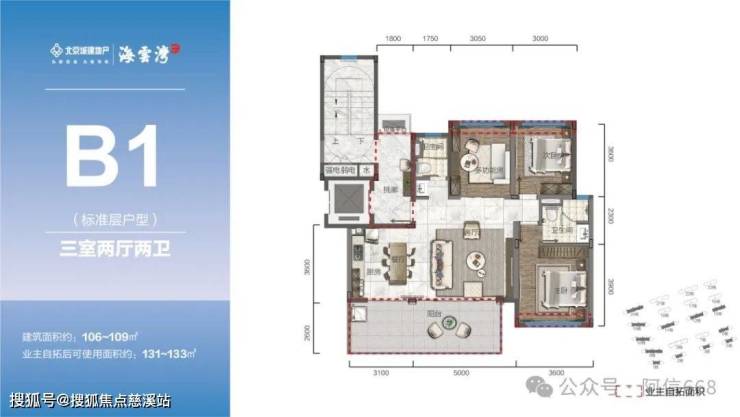 2、105-108平米三房两卫