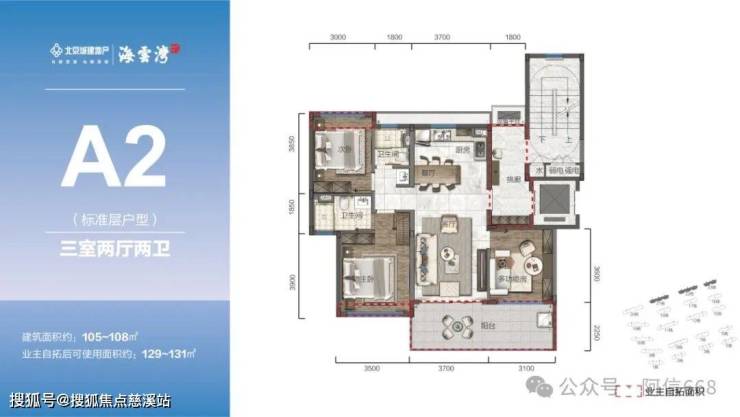 105-120㎡三房、132㎡四房