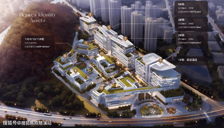 项目总用地面积56695.26㎡,总建筑面积约17万㎡,容积率1.8,建筑限高45米,建筑密度35%,绿地率33%,停车位1052个。