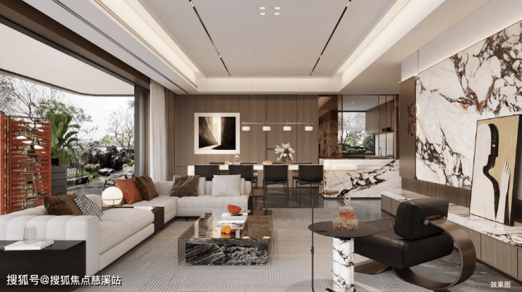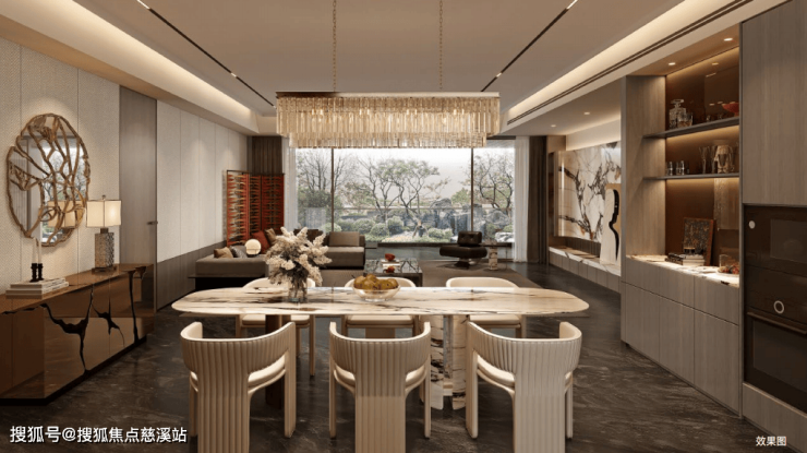 公区以海派为笔触,染现代之气韵,融汇成一方优雅生活的序章