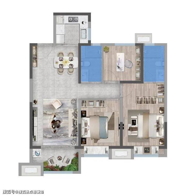 建面约111㎡全能三房,主卧套房、次卧、书房各司其职,告别"一房"难求的尴尬。