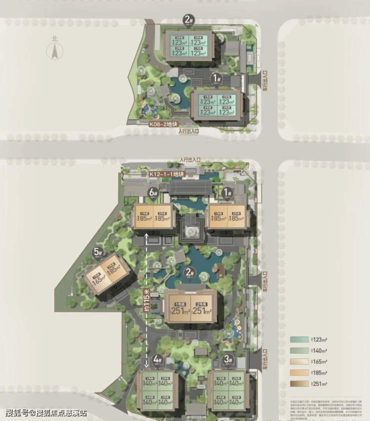 社区内部规划约3万㎡围合式中式园林,打造“一带三院九集十二景”的景观体系。“一带”即贯穿整个社区的景观带,串联起各个景观节点,形成一条流动的风景线;“三院”则根据不同的主题和功能进行划分,营造出各具特色的庭院空间;“九集十二景”则通过亭台楼榭、重山叠水、名木古树等元素的巧妙组合,再现了宋代名园的意境,让居住者仿佛置身于一幅流动的宋画之中。