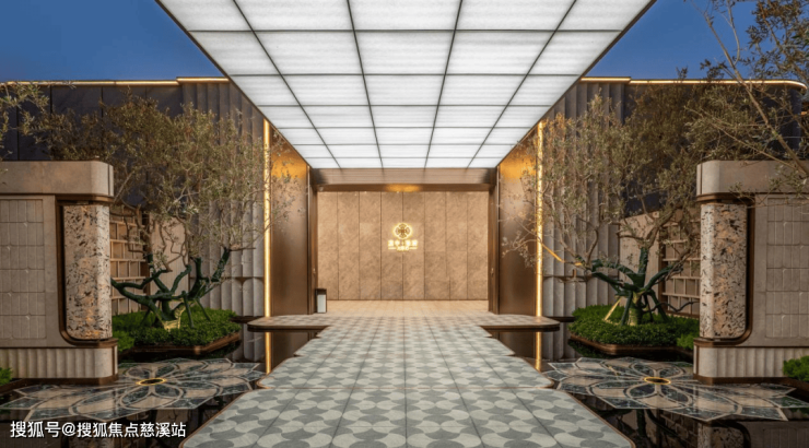 项目特邀上海天华建筑、重庆蓝调国际、纳沃三大设计团队联袂创作,约120米精奢门庭彰显归家气度,采用现代对称美学设计,近70米宽弧形顶盖与9米挑高大堂,围合出1300㎡全铝板礼序空间。