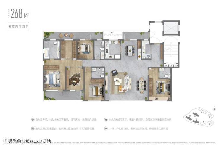 项目容积率1.81,建设3栋退台洋房及4栋小高层,总户数仅185户,精装交付,精装标准与海信君澜、君玺同档。此外,项目配套建设约2000㎡业主会所,涵盖室内泳池、揽景健身房、滨水茶室、宴会厅、瑜伽室、桌球室、乒乓球室、KTV等丰盛配套。 目前项目建面约210-273㎡退台洋房、建面约151-176㎡揽景小高层主力在售,其中洋房最大露台面积约78㎡,小高层则坐拥7米宽厅设计。