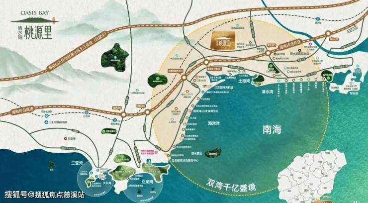 桃源里位于海棠湾与清水湾的双湾交汇之芯。立体交通网便捷延伸:
