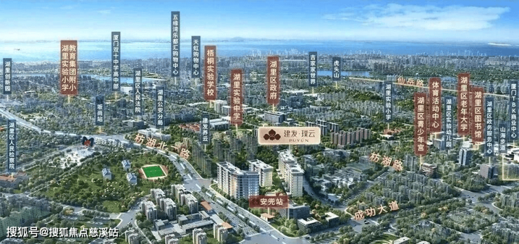 建发璞云恰好扎根湖里枋湖区府旁,这里不仅体制机构密集,周边圈层素养高,还聚集了湖里区行政服务中心、区政府及相关权力单位,方圆 1 公里内生活与政务配套一应俱全。