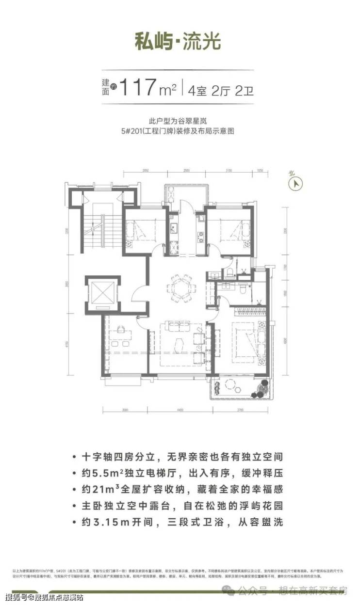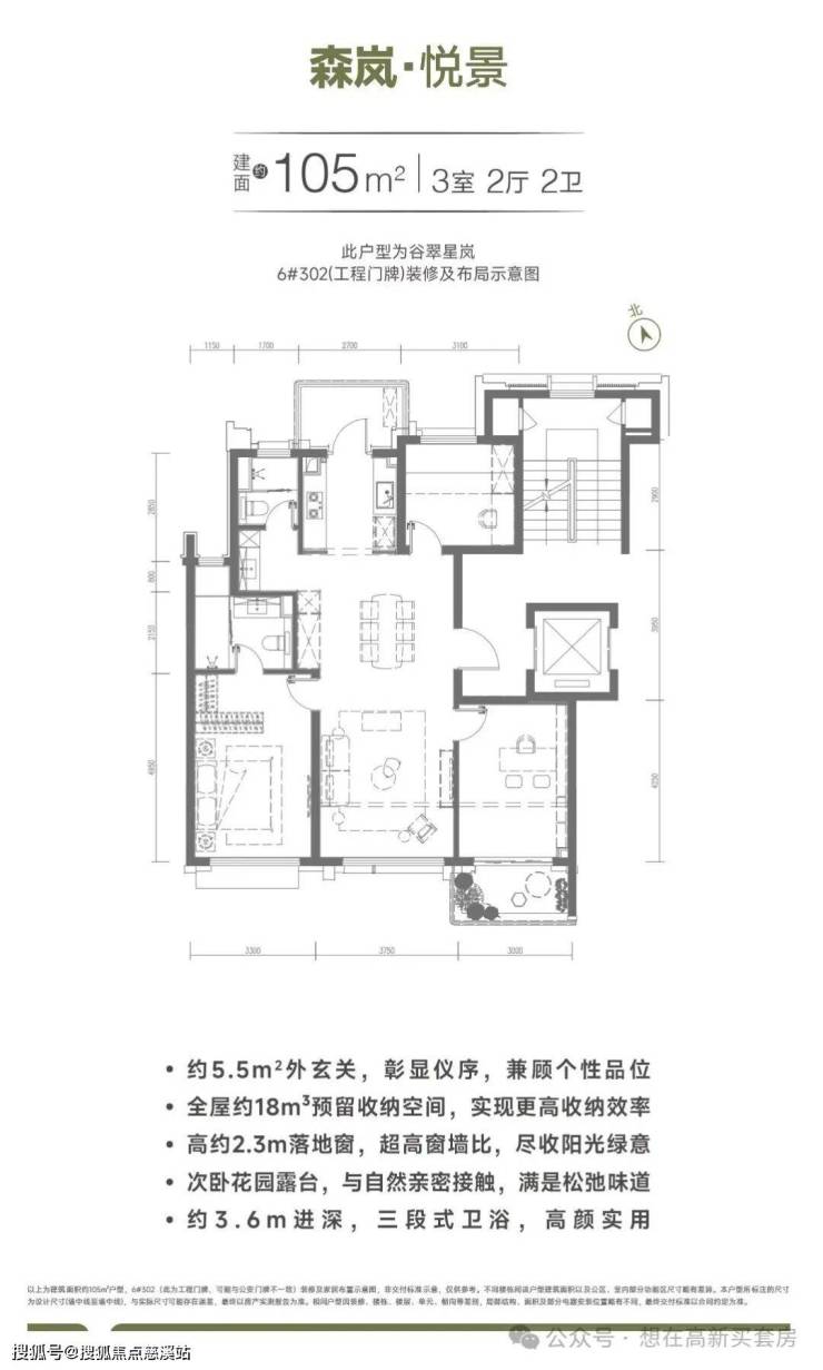 项目为纯洋房四代宅,得房率高,赠送面积多,粗略计算105平方套内使用面积也要接近100平左右,相当于三代宅两梯四户高层135平的套内使用,并且105平做三房两卫真正符合了改善的要求,做到了各个空间都阔绰的空间感。