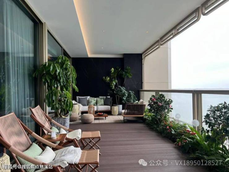 隐私设计:同向挑高6.8米阳台形成天然视线隔离,全钢结构实现无柱空间,353㎡户型实际使用面积达600㎡