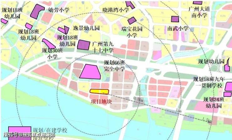 项目500米范围内规划有一所66班完全中学,1公里范围内有广州第九十七中学,1.5公里范围内有南武小学等。具体学区划分待进一步确认,但教育配套的优势已经显现。