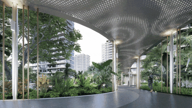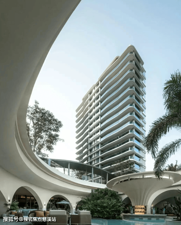 项目特邀HWCD、LANDAU朗道国际设计等10位大师融合海浪美学打造而成,让建筑从不同角度看,都有优雅流光立面。
