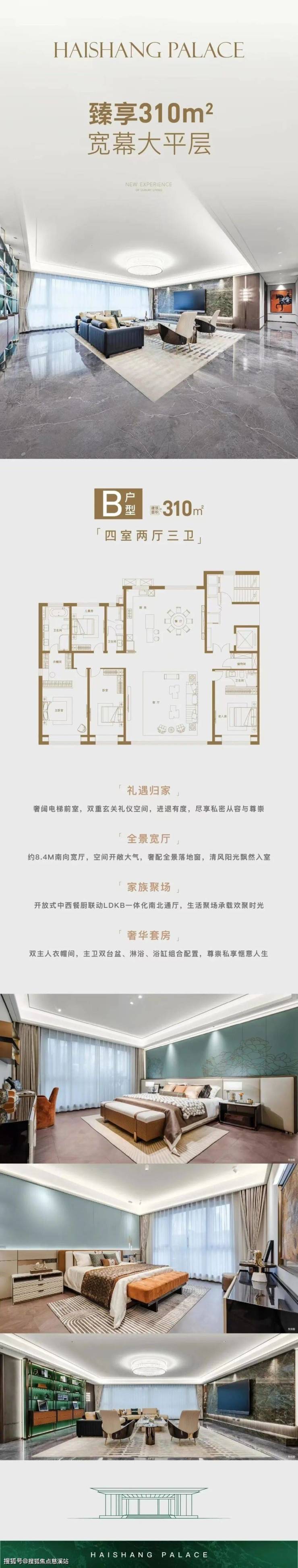 科技赋能:引入“五维智恒”科技系统,实现恒温、恒湿、恒鲜、恒静、恒洁的舒适居住环境;配备海尔智家“三翼鸟”智慧系统,涵盖全场景智家大脑屏、智能照明、安防、影音等六大系统。
