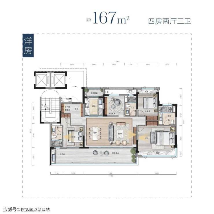 户型:113-163㎡宽境大宅,多开间朝南,大面宽布局,采光通风俱佳。