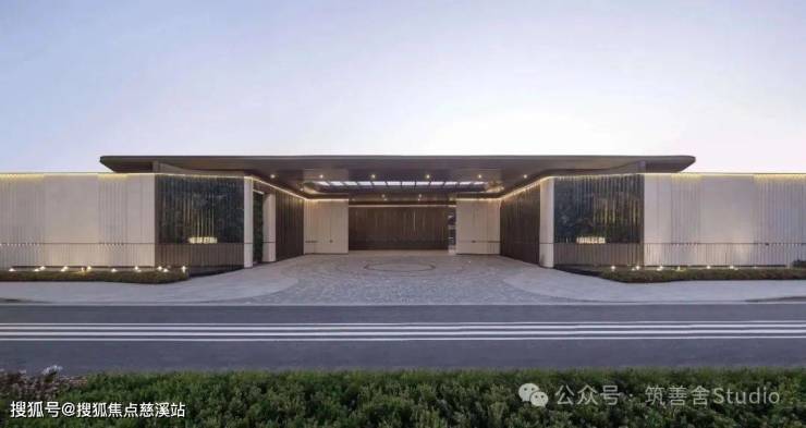 社区大门匠心独运,借鉴传统中式建筑的对称美学与挑檐风格,营造出庄重而礼仪的空间氛围。门庭所选用的百达翡翠石材,汲取自Piaget伯爵香港旗舰店的设计灵感,其石质纹理细腻,质感独特。经过精细的弧形与折线切割工艺,使得入口处独具匠心,既显温文尔雅,又不失刚毅之姿,实现了东方传统美学与现代审美潮流的和谐交融。