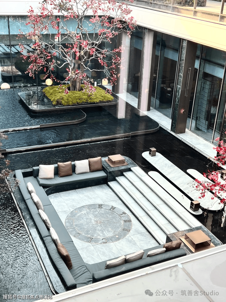 下沉式庭院,引入广阔镜面水景,水面上错落有致地布设景观绿植,与嵌入式休闲沙发会客区相映成趣,营造出既生动又高雅的空间氛围。每一园区皆蕴藏一个缩微宇宙,每一步履间,景色迭变。设计师们不仅为下沉庭院赋予了独特的主题风格,更致力于通过巧妙设计,让室内空间与自然景观无缝衔接,和谐共融。