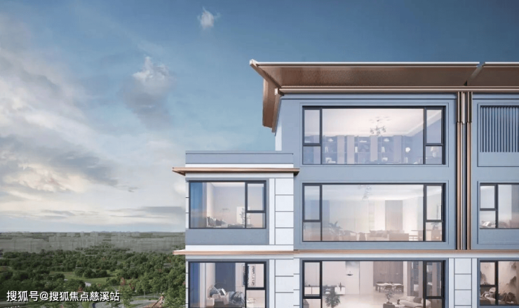 ▪金地·山川印建筑顶部造型取法中国传统建筑的飞檐形式,在外立面选取斗拱等中式建筑符号,以铝板等现代材料实现不失底蕴、不拘古法的现代中式美学。