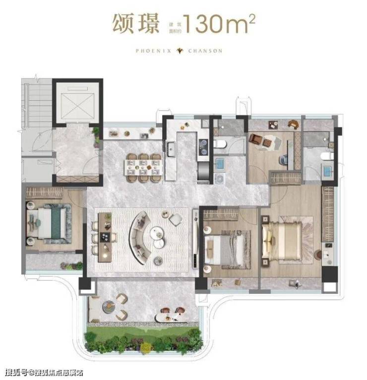 独梯独户,户户边套;空中花园,实现更多生活可能;瞰景阔厅,入主人生宽境;约105%综合使用率,重构空间想象