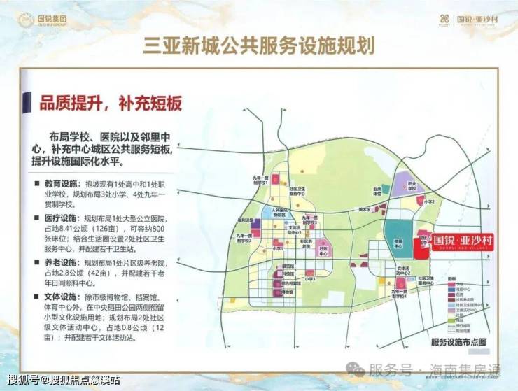 区位价值🚀国锐·亚沙村位于三亚新城·鹿城大道·国际体育中心东侧,占据绝佳地理位置。毗邻三亚新城【行政中心&文化中心】城市新配套,纵享新城发展红利【500米见公园,1公里见森林】100%林荫绿道覆盖,国锐·亚沙村位于行走的森林城市之中【新城交通路网四通八达】多条路线接驳G98环岛高速,鹿城大道直通三亚凤凰国际机场,多条归家动线【新城公共服务设施齐全】配有人民医院新院区,多所学校及养老机构,近距离享受提升后的城市服务水平